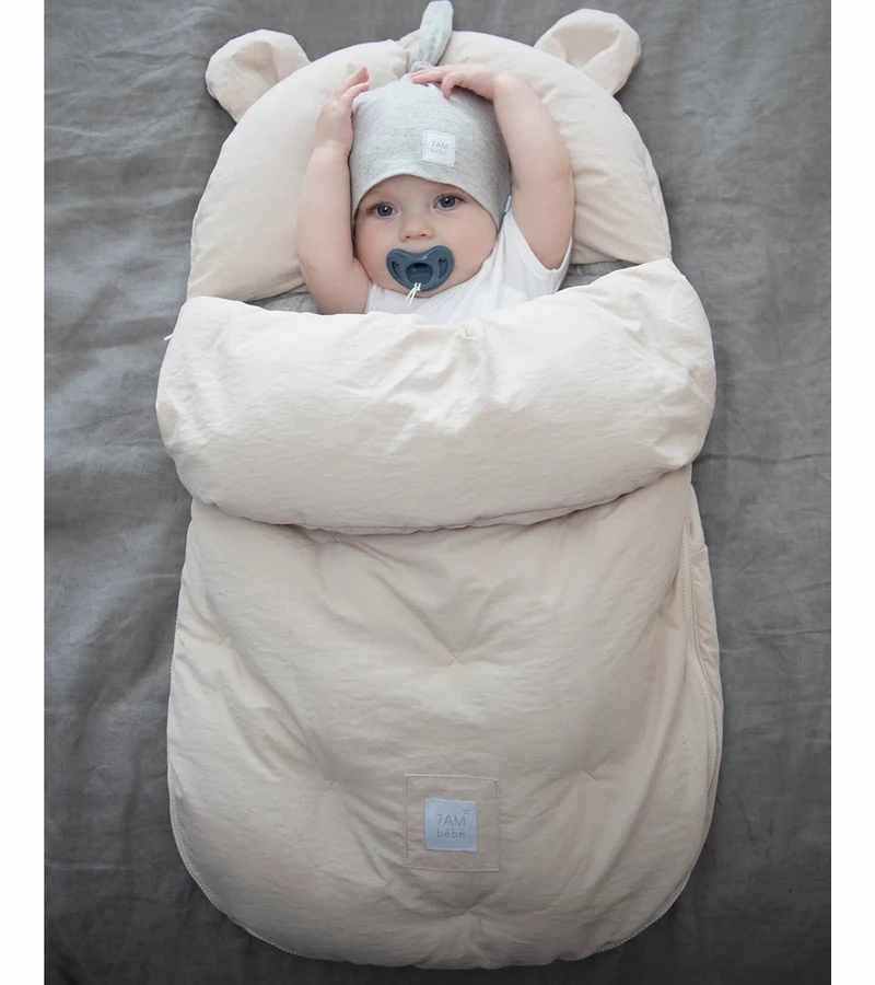 The BébéPOD Airy is the perfect infant bunting for milder temperatures as it features a 100% breathable cotton lining and soft airy materials. Adapt the BébéPOD to your bassinet, car seat or stroller as you see fit. This duvet-like sac has a detachable cover that turns into a single-panel blanket on warmer days where the back is not a necessity. When it’s crisp outside and the family is ready for a stroll, the BébéPOD Airy will cradle baby to sleep in no time.