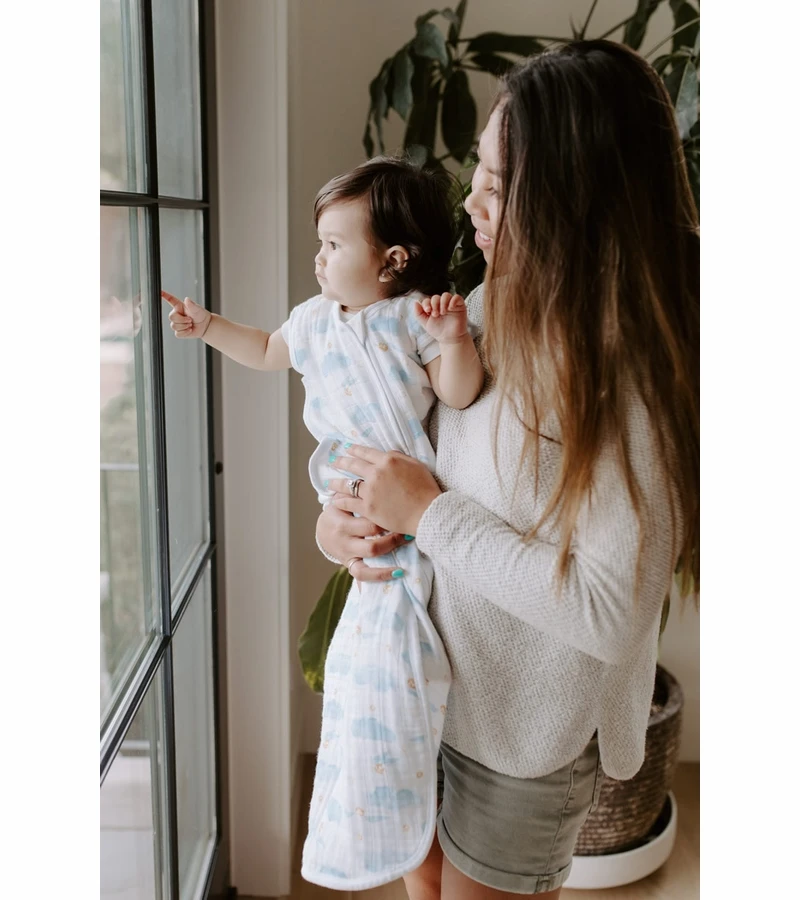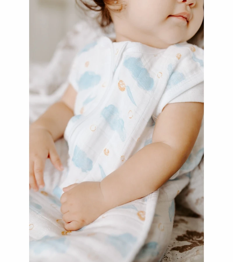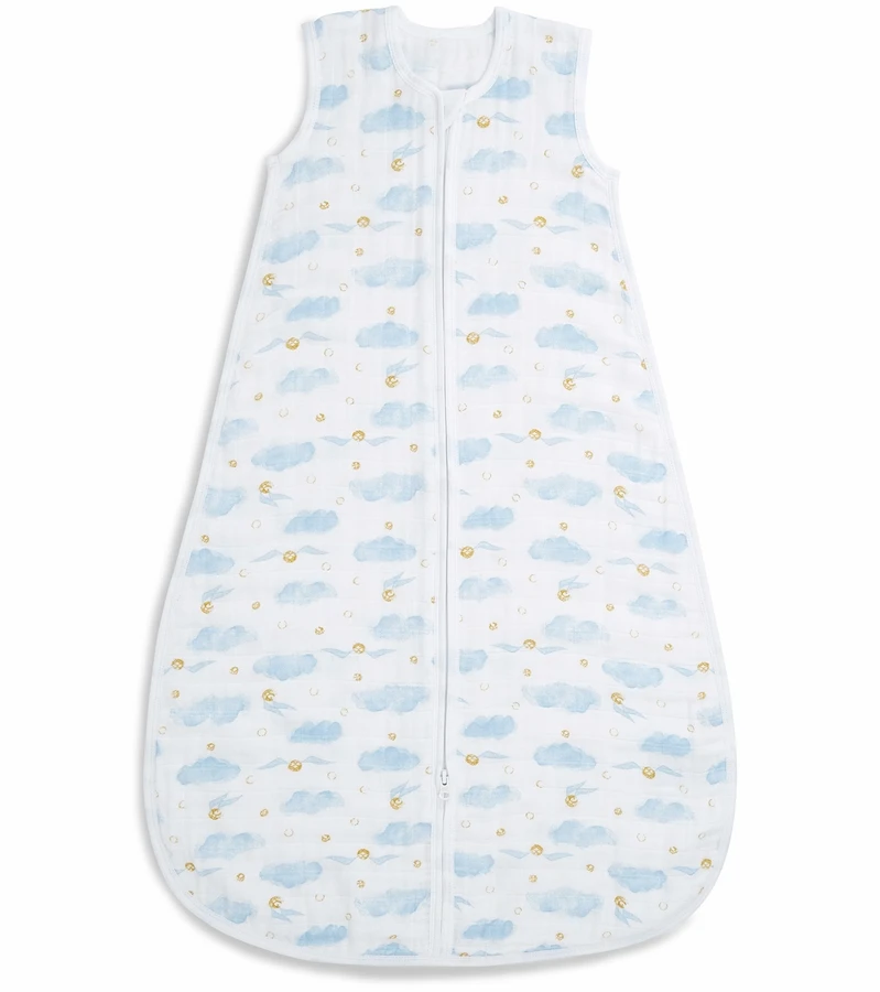 ThereÂ’s no need to stress over loose blankets in the crib with Aden + Anais’ breathable classic sleeping bag. Impossible for little legs to kick off, the wearable blanket slips over your babyÂ’s pjÂ’s and zips open from the bottom, making stealth nighttime changes a cinch. Plus, the 100% cotton muslin is pre-washed so itÂ’s super soft from the start and gets even softer with every wash.