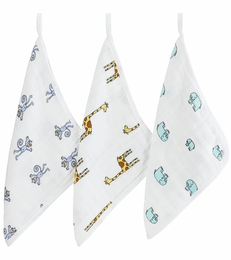 - Three 12″ x 12″ muslin washcloths