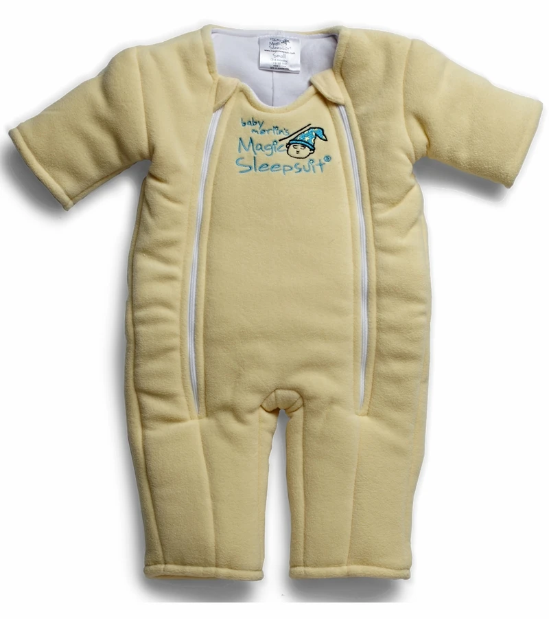 When your baby wears this cozy microfleece Magic Sleepsuit, youÂ’ll sleep soundly knowing that your little one is comfy and secure drifting off to sleep. The soft microfleece outer layer, breathable cotton inner layer with a layer of polyfil in between provides just enough security and comfort to muffle your baby’s startles and help them transition from the swaddle smoothly. The scooped neckline keeps fabric away from baby’s face, and double zippers make diaper changes a snap. The Magic Sleepsuit is to be used for back sleeping in the crib, the recommended safe sleep position.