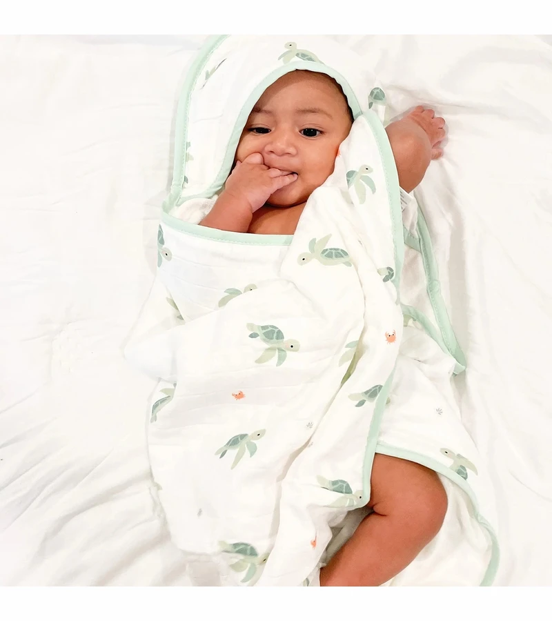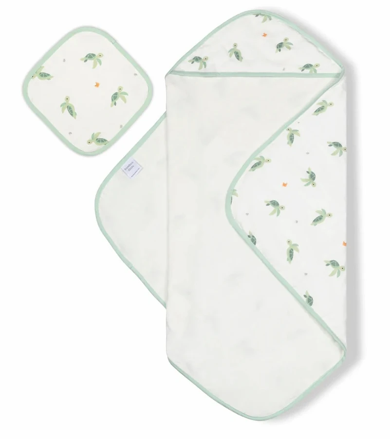 Bamboo Little Hooded Baby Towel & Washcloth Set – Turtle