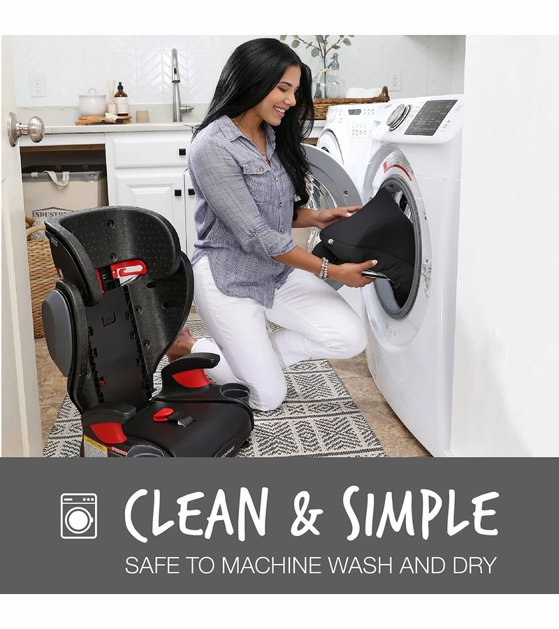 This 2-stage belt-positioning booster seat pairs superior safety with stylish design. It easily converts from a high back booster to a backless booster, so your child rides safer, longer. 3 layers of side impact protection include an energy-absorbing shell, side cushions, & 10-position, quick-adjust headrest, that grows with your child up to 63″. 2 dishwasher-safe cupholders keep drinks and snacks within reach. With plush, foam padding & built-in arm rests, your big kid will enjoy the ride.