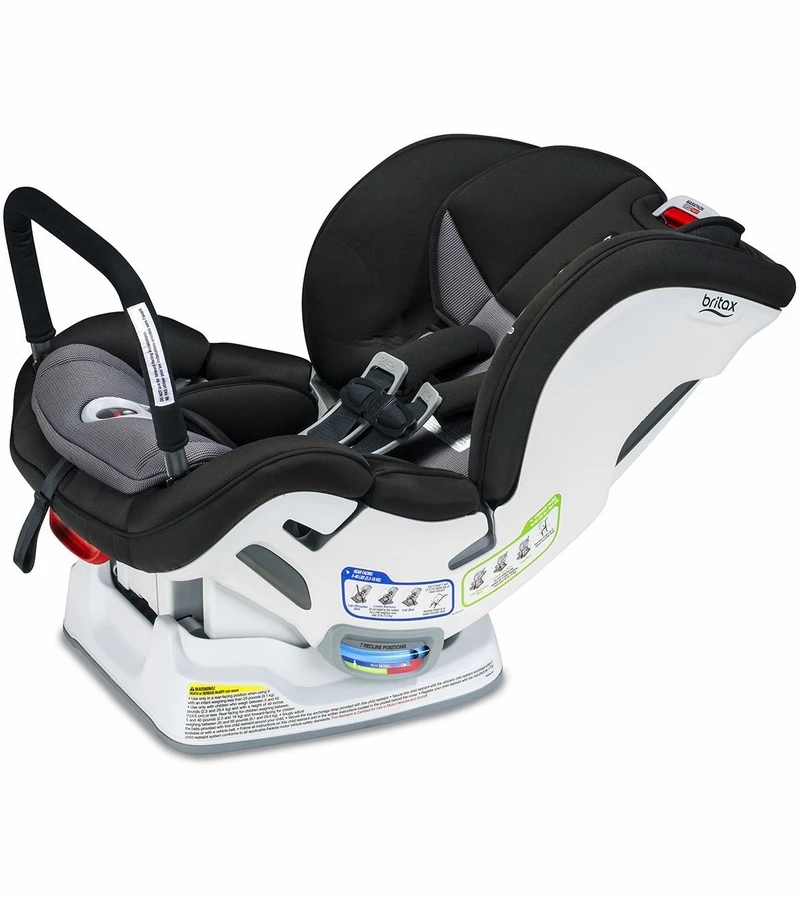 - 7-position recline with automatic level indicator adjusts for proper recline rear-facing or for comfort and the best vehicle fit forward-facing.