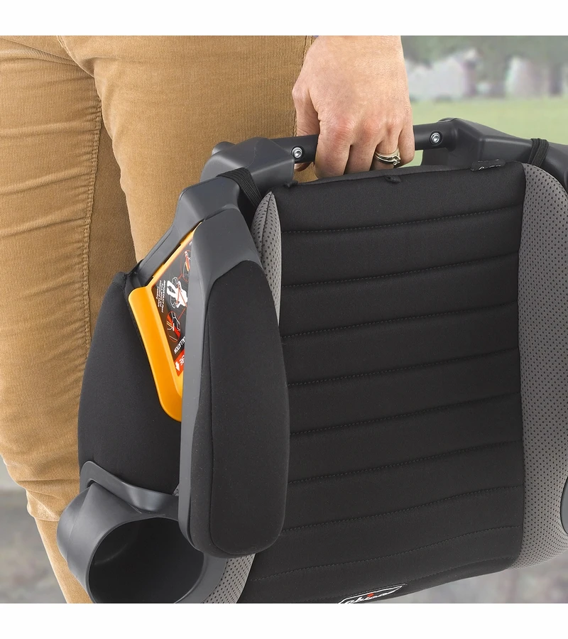 The GoFit? Backless Booster is designed for big kid comfort with a contoured ErgoBoost? seat and double foam padding that provide support in all the right places. Two soft-sided cup holders easily flex and fold out of the way to save space. For parent convenience, the cup holders are easy to remove and dishwasher-safe. All fabrics are also removable and machine-washable, including the pop-out arm rest covers. Integrated lap belt guides and a shoulder belt clip make it easy to position the vehicle seatbelt for proper use. A built-in carry handle makes it easy to transfer from vehicle to vehicle, and a smooth underside helps protect vehicle seats from damage. This product conforms to Federal Motor Vehicle Safety Standard 213. Features: