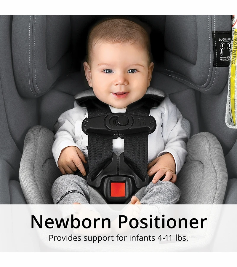Offering a seamless transition, the NextFit® Max ClearTex™ provides more calf support in forward-facing mode and a 65 lb. weight limit. A 9-position, Easy-Extend Headrest System raises with the harness to effortlessly accommodate growth throughout both modes and a removable newborn positioner provides support for infants weighing 4-11 lbs.