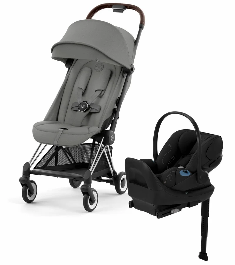 Cybex COYA Compact Stroller + Cloud G Lux SensorSafe Travel System Bundle – Chrome / Mirage Grey / Moon Black