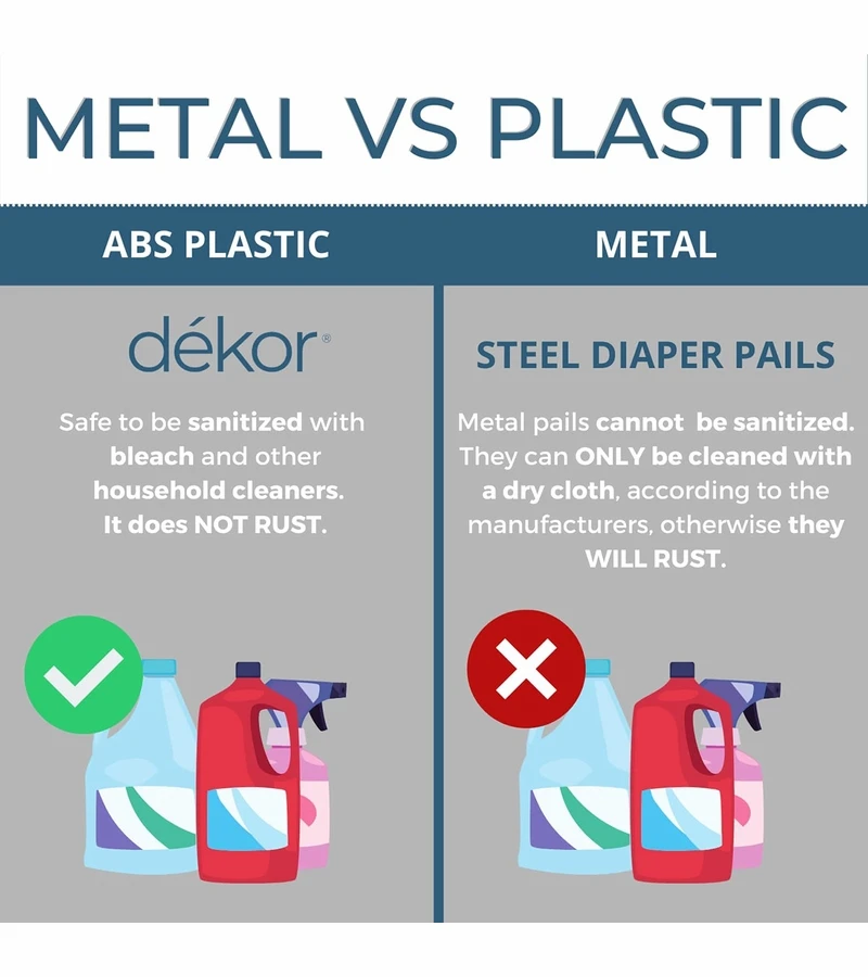 For safety, Dékor Pails have a safety lock for the trap door to keep little ones out where the diapers go in. Also, the cutter is child-proof and the access door automatically locks when pushed closed.
