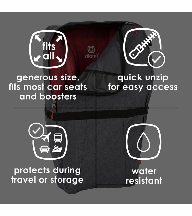 The Radian® Car Seat Travel Backpack from Diono is ideal for families on the go. Made with durable, weather-resistant material, the Travel Backpack protects your car seat on the move.