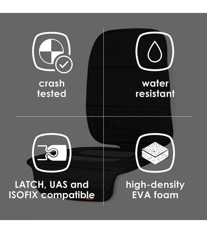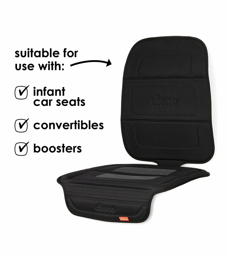 The Diono Seat Guard Complete was designed to cover the vehicle seat to keep car seats firmly installed without causing harm to the upholstery. Made with lightweight yet durable material and featuring raised edges to capture crumbs, dirt and spillages.Â