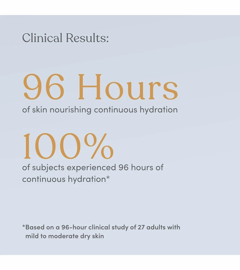 Developed with pediatric dermatologists, this formula is made with the best plant-based ingredients like our signature barrier-protecting and hydrating marine algae blend and organic superfoods like grape seed oil and shea butter. Clinically proven to provide 96 hours of hydration, it locks in long-lasting moisture to keep baby’s skin hydrated and happy day after day.