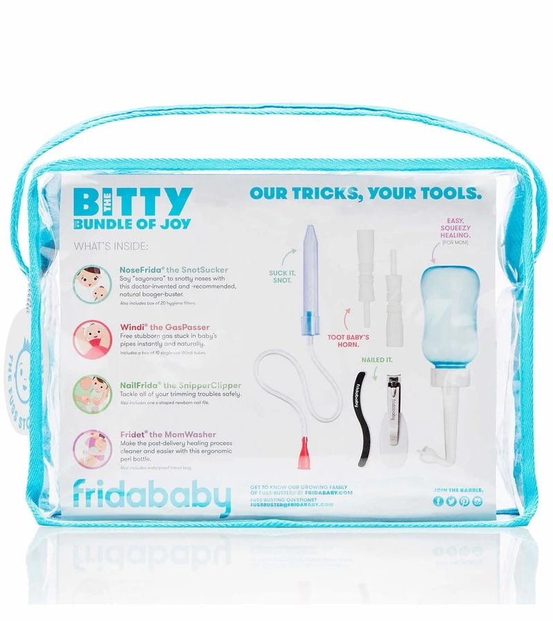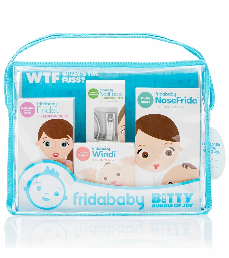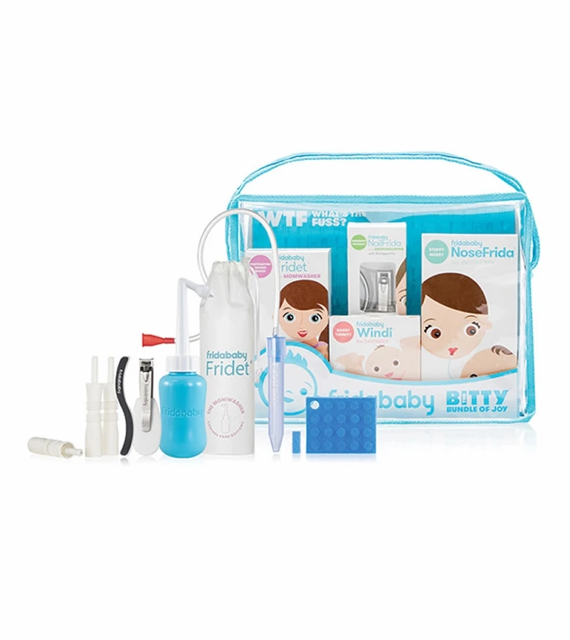 The Bitty Bundle of Joy is the ultimate starter kit for mom and baby, making it a new mom must-have! The gift-set includes the fan-favorite and #1 most registered for item, NoseFrida the SnotSucker, in addition to our other essential mom and baby tools that take mom from postpartum care to boogers, butts and beyond! All packaged in one beautiful, reusable pouch with a customizable gift tag, itÂ’s the perfect baby shower gift and a registry necessity.