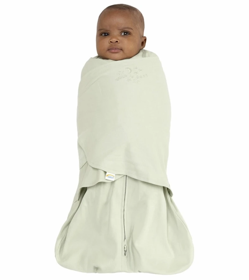 The Halo? SleepSack? Swaddle replaces loose blankets in the crib that can cover your baby?s face and interfere with breathing. In addition to helping your baby sleep safer, it helps him sleep better, too. Its adjustable swaddle wrap immobilizes your baby’s arms to prevent the “Moro” or startle reflex. And, it is the only 2-in-1 adjustable swaddle that allows for swaddling arms in or arms out for baby?s comfort and to ensure an easy and gentle transition to the SleepSack wearable blanket when it is time to stop swaddling.