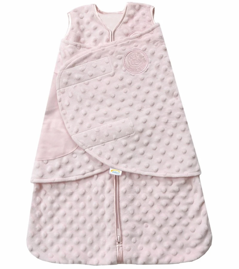 The Halo? SleepSack? Swaddle replaces loose blankets in the crib that can cover your baby?s face and interfere with breathing. In addition to helping your baby sleep safer, it helps him sleep better, too. Its adjustable swaddle wrap immobilizes your baby’s arms to prevent the “Moro” or startle reflex. And, it is the only 2-in-1 adjustable swaddle that allows for swaddling arms in or arms out for baby?s comfort and to ensure an easy and gentle transition to the SleepSack wearable blanket when it is time to stop swaddling.