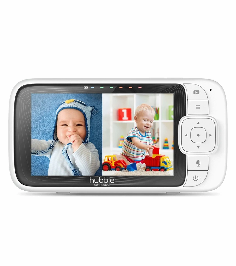 With pristine, High-Definition picture quality, Hubble Nursery Pal Cloud makes it crystal clear that our baby monitors are no longer just for parents. Digitally pan, tilt, and zoom from the 5” smart parent unit to maintain the perfect view of your little one. Track climate conditions with the room temperature monitor and soothe your baby with the sweet sound of your voice using two-way talk communication. Preloaded nature sounds, lullabies, and bedside stories gently lull your baby to sleep, while the 7-color night light and sleep trainer ensure that sleep brings them peaceful, pleasant dreams. Give yourself the peace of mind you deserve with Hubble’s Nursery Pal Cloud. More Than Just a Baby Monitor.