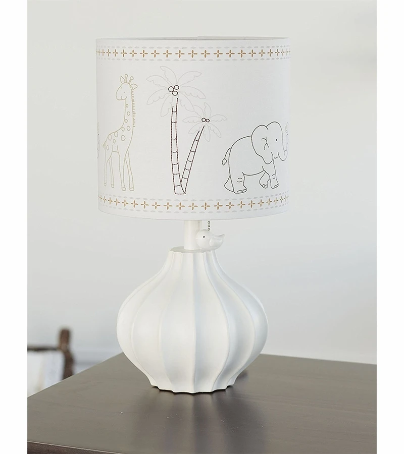 Provide warm light in the nursery with the Animal Kingdom Lamp. Featuring a simple outline of marching safari animals, it’s the perfect accessory to complete the look of any jungle-inspired nursery collection, especially the Just Born? Animal Kingdom Nursery Bedding Collection.