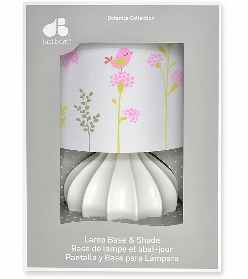 Provide warm light in the nursery with the Botanica Lamp. Featuring a simple outline of pink flowers, butterflies and birds, it’s the perfect accessory to complete the look of any nature themed nursery collection, especially the Just Born? Botanica Nursery Bedding Collection.