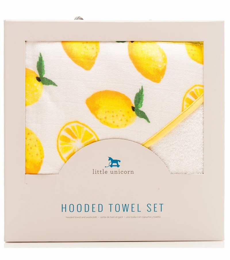 Clean and warm. Bath towel with printed cotton muslin on one side and ultra-soft terry cloth on the other; a cozy hood and pockets for little hands.