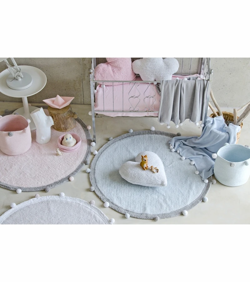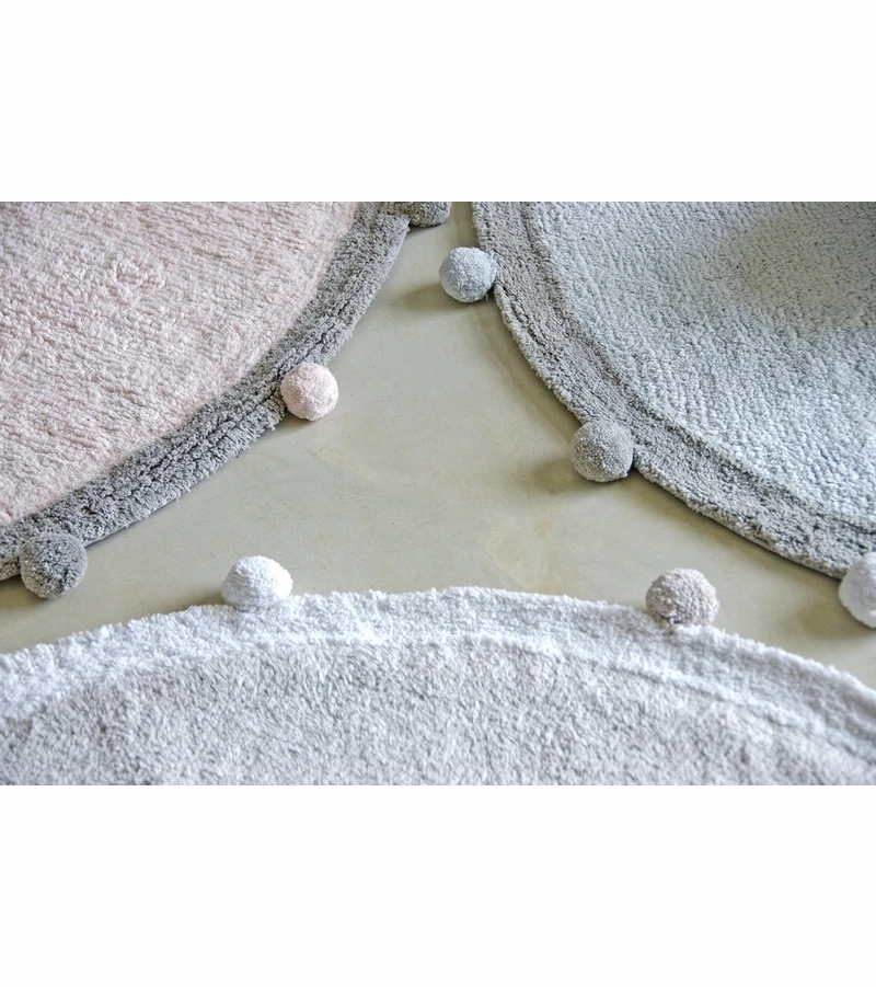 Bubbly rugs add a cheery, comfortable touch to any room. Choose from three mellow color combinations that look great in a nursery, sitting room, porch, or den.