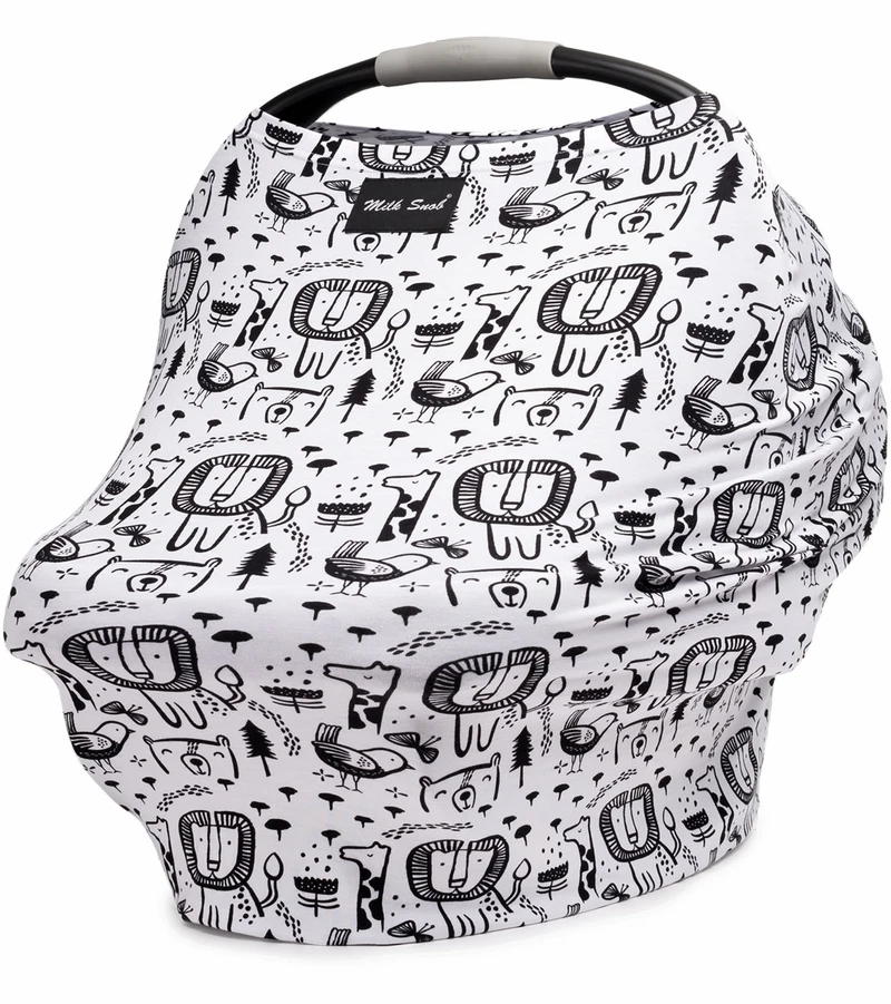 The original Milk Snob® Cover is a fitted infant car seat cover that can also be used as a nursing cover or shopping cart cover.