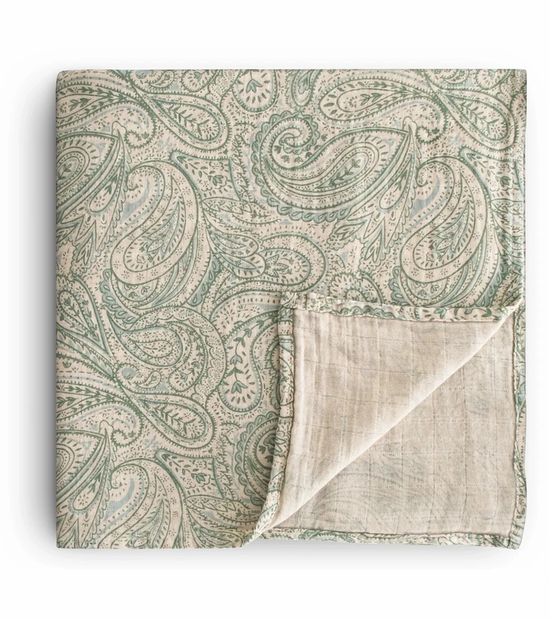 Mushie Organic Cotton Muslin Swaddle Blanket – Green Paisley