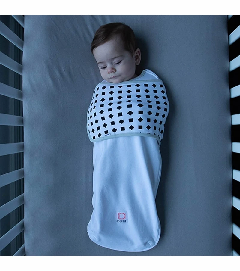 The Nanit Swaddle works exclusively with the Nanit Plus nursery camera, to monitor your babyÂ’s breathing motion with no sensors on their body or in their cot. Nanit Plus is able to track breathing motion by reading subtle movements in the fabricÂ’s custom pattern, and alert you if your baby needs you. Plus, the Swaddle is snug, soft and comfy, to help them sleep soundly.