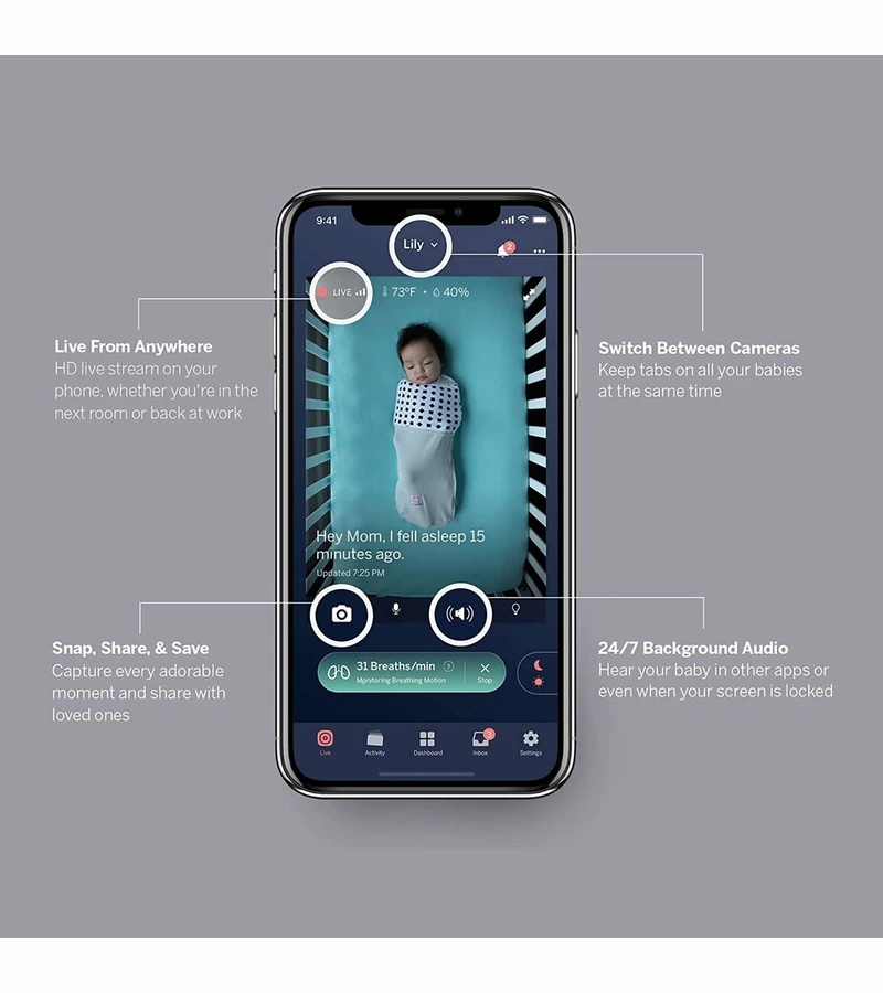 With Breathing Wear, youÂ’ll see your babyÂ’s breathing motion right in your Nanit app. Should they ever need your attention, youÂ’ll receive alerts on both your phone and your camera.