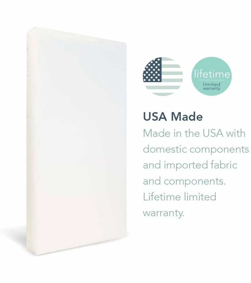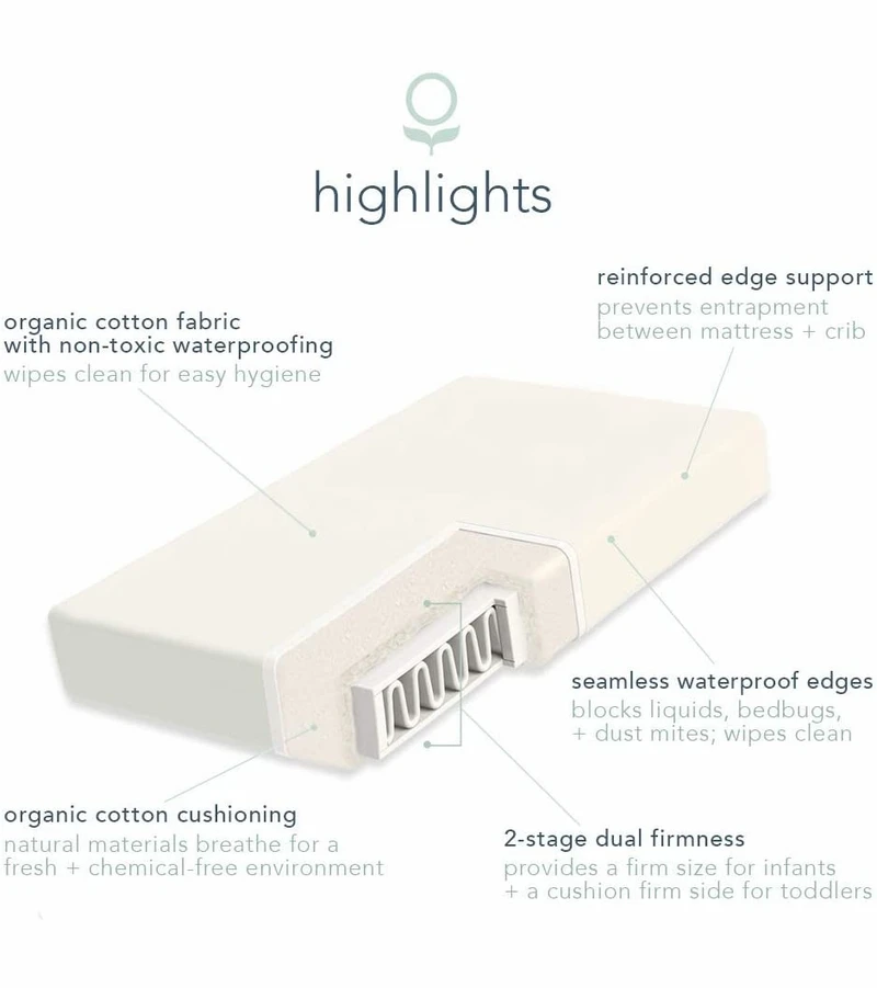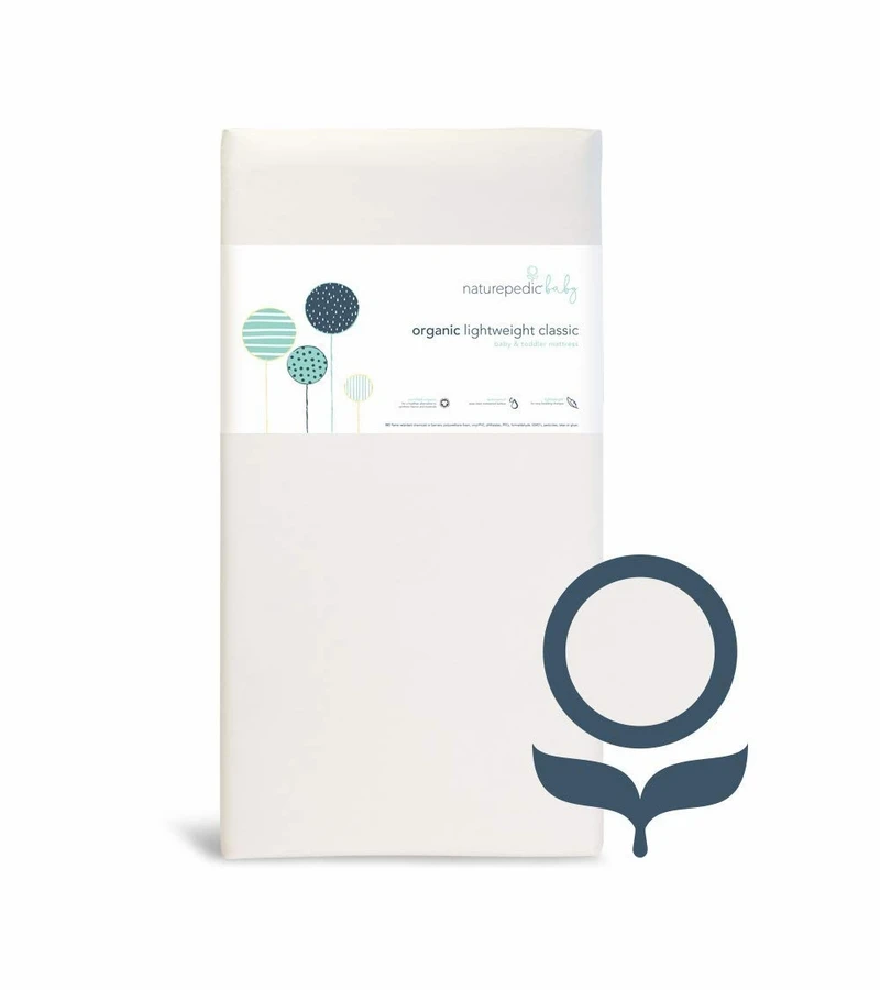 The Naturepedic Organic Cotton Lightweight Classic matches the strength and durability of an innerspring without the added weight. Layers of luxurious organic cotton batting create the perfect balance of firmness and comfort. Get the best of both worlds; firm and comfortable for baby with long lasting durability and easy crib changing for mom! At its core, this mattress is built with Naturepedic’s exclusive patent pending wavesupport™ technology, made from pure food-grade polyethylene. Naturepedic is a GOTS certified organic mattress manufacturer and has earned the trust of moms and doctors across the country. Naturepedic also meets the strictest GREENGUARD® certification standards for eliminating chemical emissions. Winner of numerous awards and prestigious endorsements, Naturepedic organic crib mattresses are simply the healthiest available.