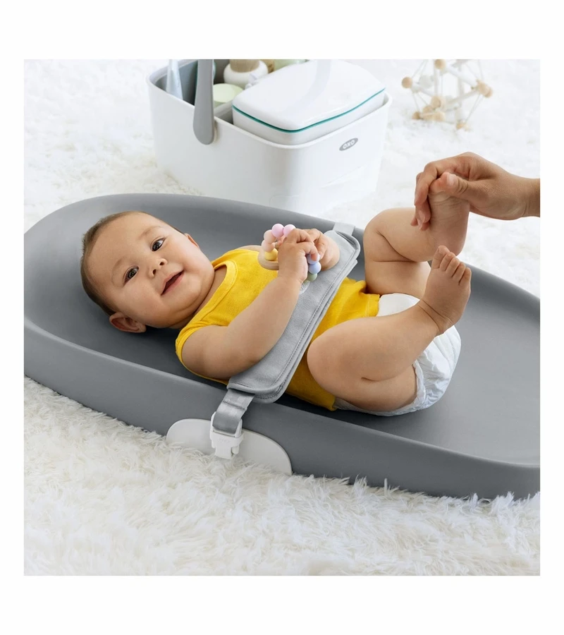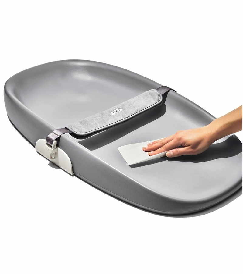 You can never be quite sure when the next diaper changes needs to happen. With the OXO Tot Changing Pad you’ll never be caught empty-handed. The generously sized, comfortable Pad can easily be used with any changing table or dresser for diaper changes. It includes a one-handed buckle so you can keep one hand on your wriggling baby during changes. The buckle’s strap is adjustable too, so it can grow with your child. The soft, PVC-free cushion makes for a comfortable spot for baby to lay, while the curved design cradles baby for extra protection. Plus, the EVA material and sloped design makes it is easy to clean. 30 lb. weight capacity.
