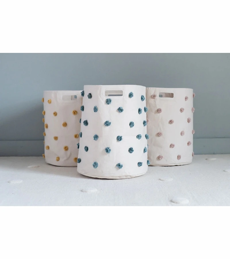 Our hampers are designed to hold clothes, mitts, boots, trucks, balls, blocks and everything in between. With each Pom Pom sewn by hand, our Pom Pom Hampers beautiful and practical.