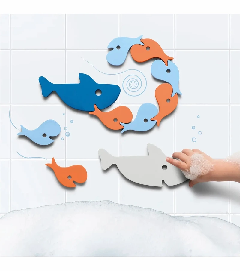 Let the imagination of your little ones run wild with this versatile soft foam (EVA) set of 2 sharks and 8 fish. Matching the different shapes helps children improve their fine motor skills and create their own stories.