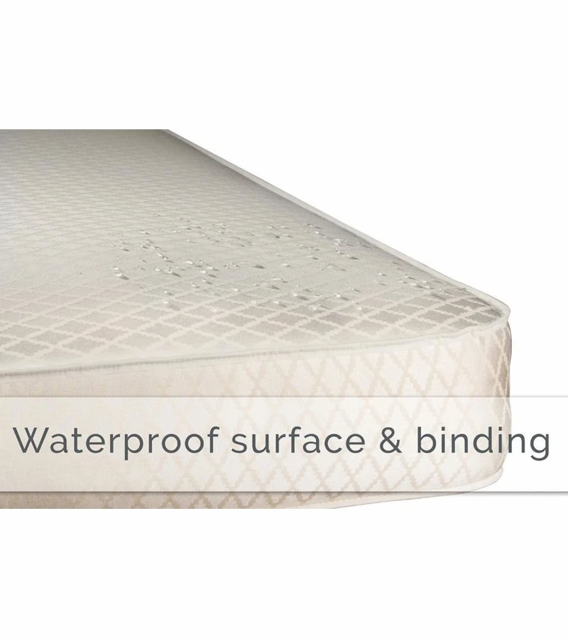 - The luxurious cotton cover is waterproof and designed with an allergy-barrier liner while the waterproof binding won’t allow liquids to seep inside; pvc-free mattress option