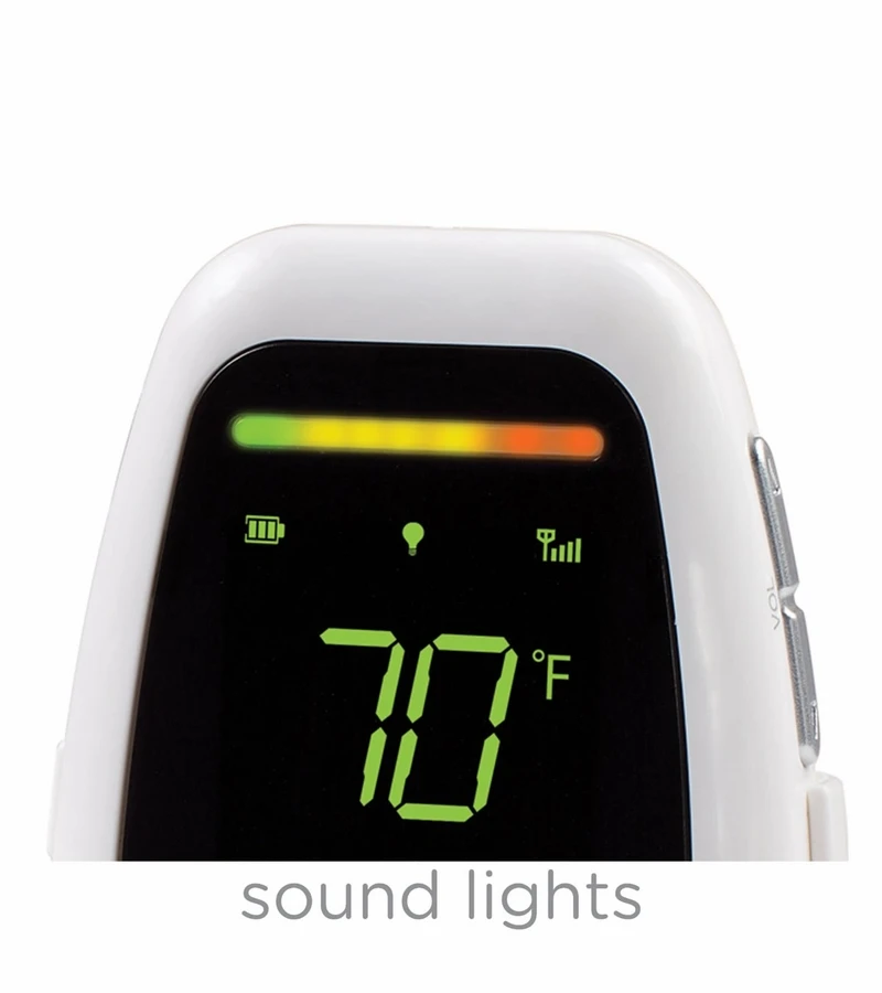 - Sound activated LED lights, indicating the level of noise coming from baby?s room